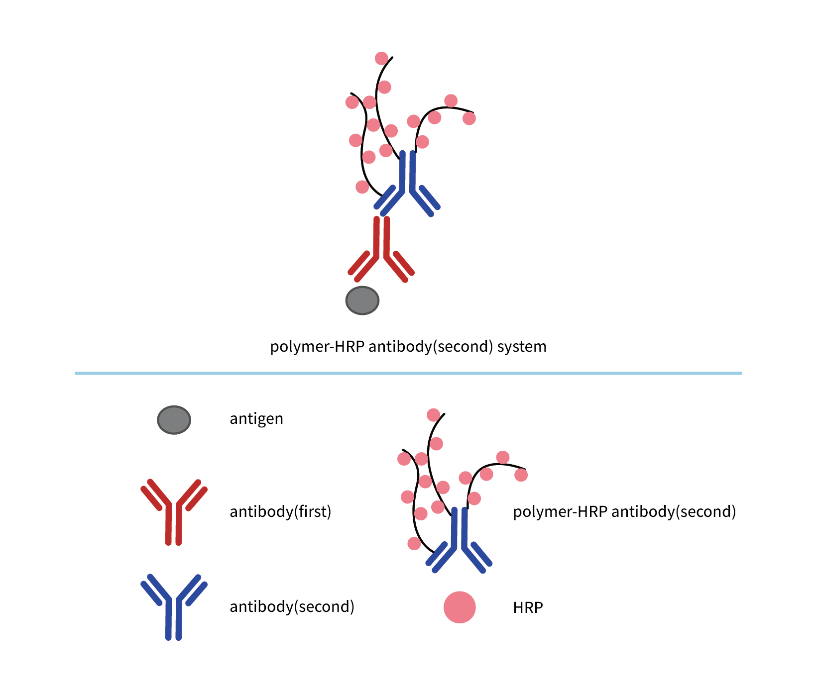 我司研发的Polymer-HRP标记的IHC二抗检测系统是用于免疫组化(IHC)检测的一种高效、灵敏的免疫组化(IHC)检测试剂盒。它通过先进的聚合物技术,将辣根过氧化物酶(HRP)与特异性抗体结合,形成稳定的聚合物复合物。这种独特的标记方式极大地提高了信号强度和检测灵敏度,同时减少了背景染色,操作简便、稳定性强。该系统通过优化的二抗与酶标聚合物结合,显著提高了检测的灵敏度和特异性,适用于多种组织类型和抗原的免疫组化染色。