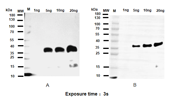 - 本试剂盒中ECL工作液灵敏度为fg级,请根据实验需求调整曝光时间